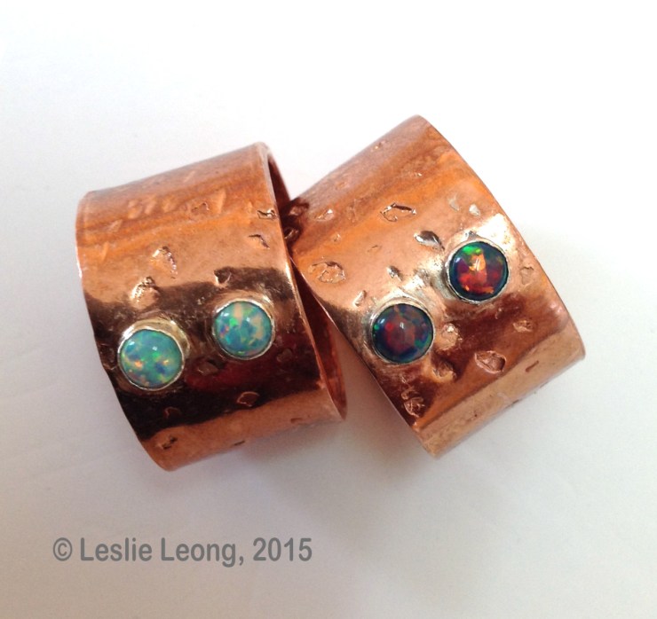 July 22, 2015November 10, 2017leslieleongartsLeave a Comment on Double opal (set in sterling silver), copper rings designed for the middle finger. Share this: Click to share on X (Opens in new window) X Click to share on Facebook (Opens in new window) Facebook Like Loading... Related