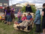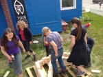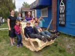 Leslie directed an Artists in the Schools project with the Home School group in the YA@W yard yesterday. The Art-build Project was made of 2×4" off-cuts compliments of the Kilrich Truss Plant.