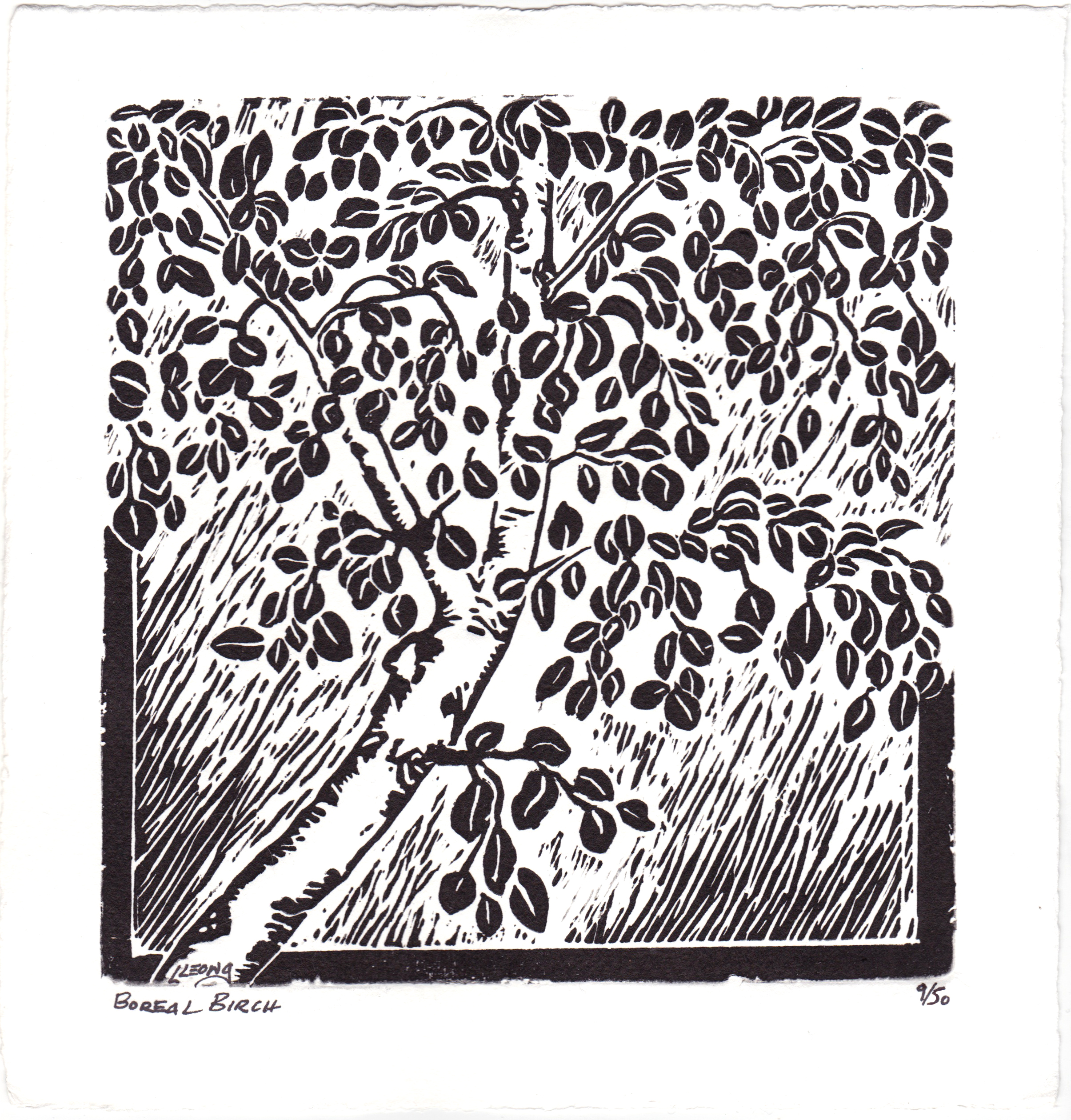 Boreal Birch, by Leslie Leong Boreal Birch, Linocut print by Leslie Leong, Canadian Artist, Whitehorse, Yukon Like Loading...
